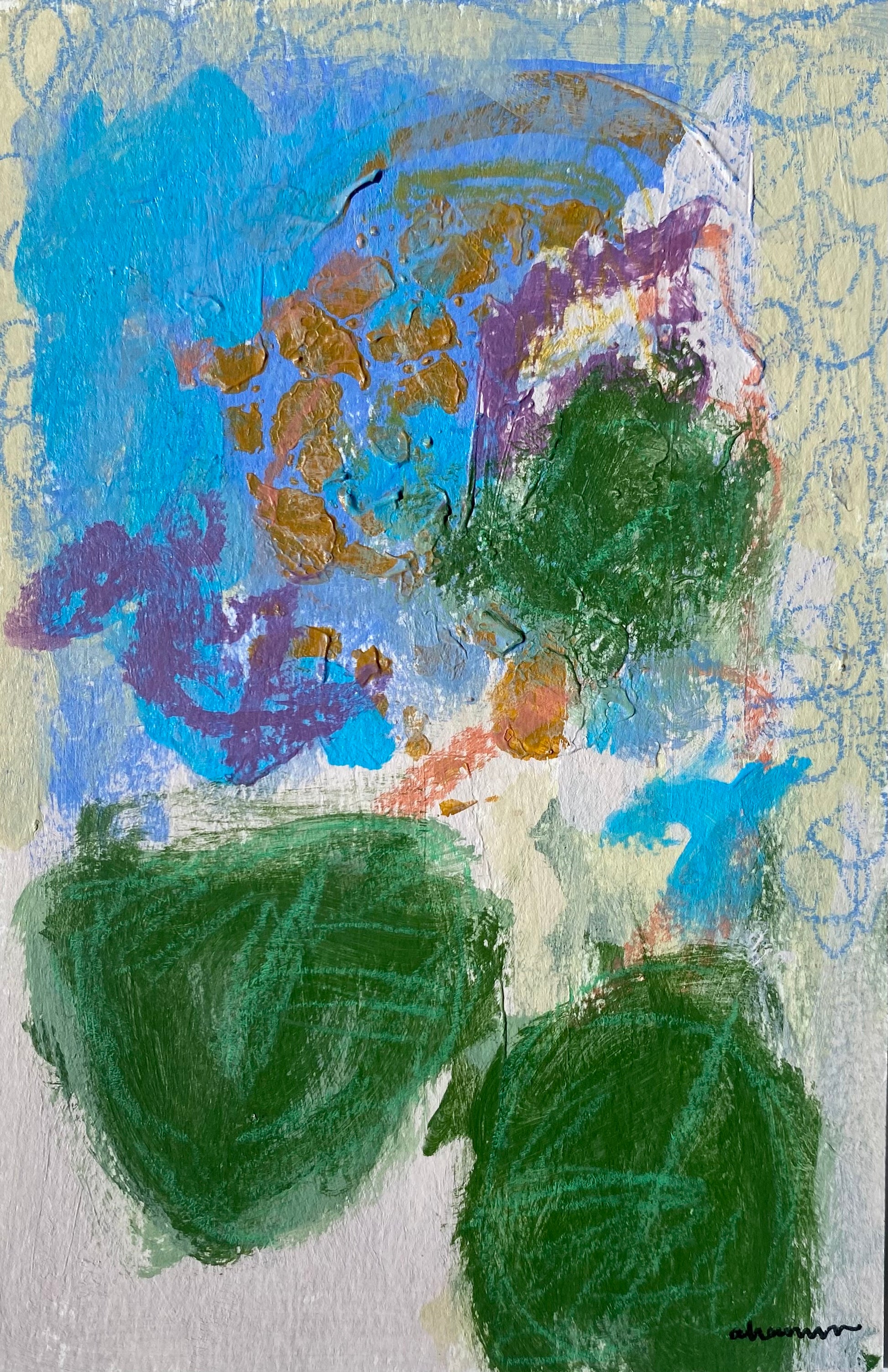 Seeking - Lily Pads 4, 4x6" Mixed Media on Paper
