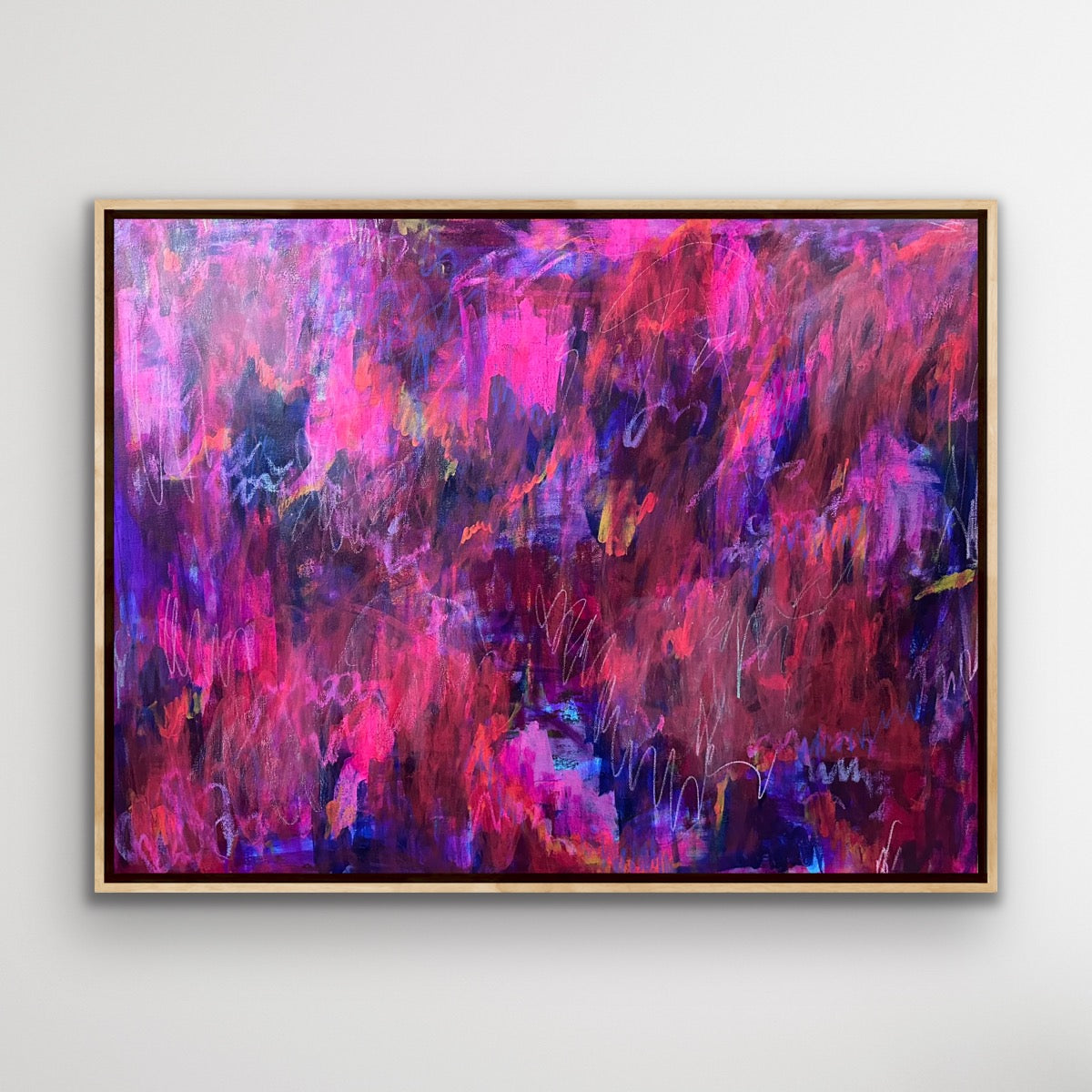 • Acrylic, wax pastel, tempera on stretched canvas